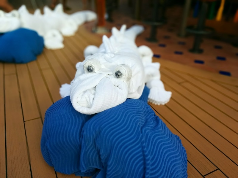 Final Thoughts: Carnival was most definitely the fun ship! On the last sea day, Ari got to be part of the Hasbro game show and won $150 gift card along with a bunch of games. There were activities with prizes every day. Whether you are into trivia, boardgames, scavenger hunts, dancing, or just being silly… they had a little bit of everything. The staff was amazing, from the crew members cleaning you room, to those planning activities, serving meals, or tending the bars. On the morning of our last day, the crew members had spent hours folding towel animals which filled the main pool deck area. It left a great impression!